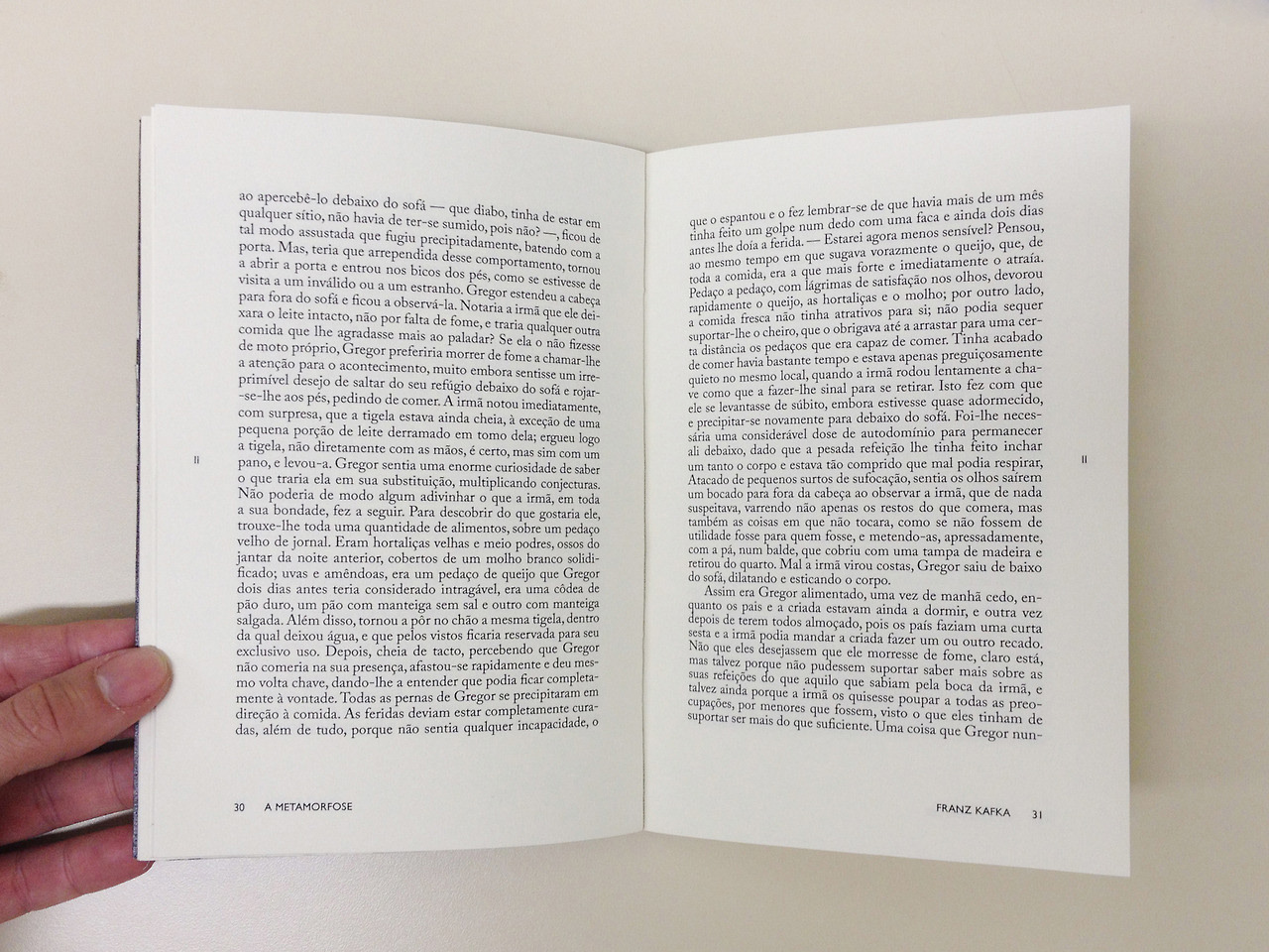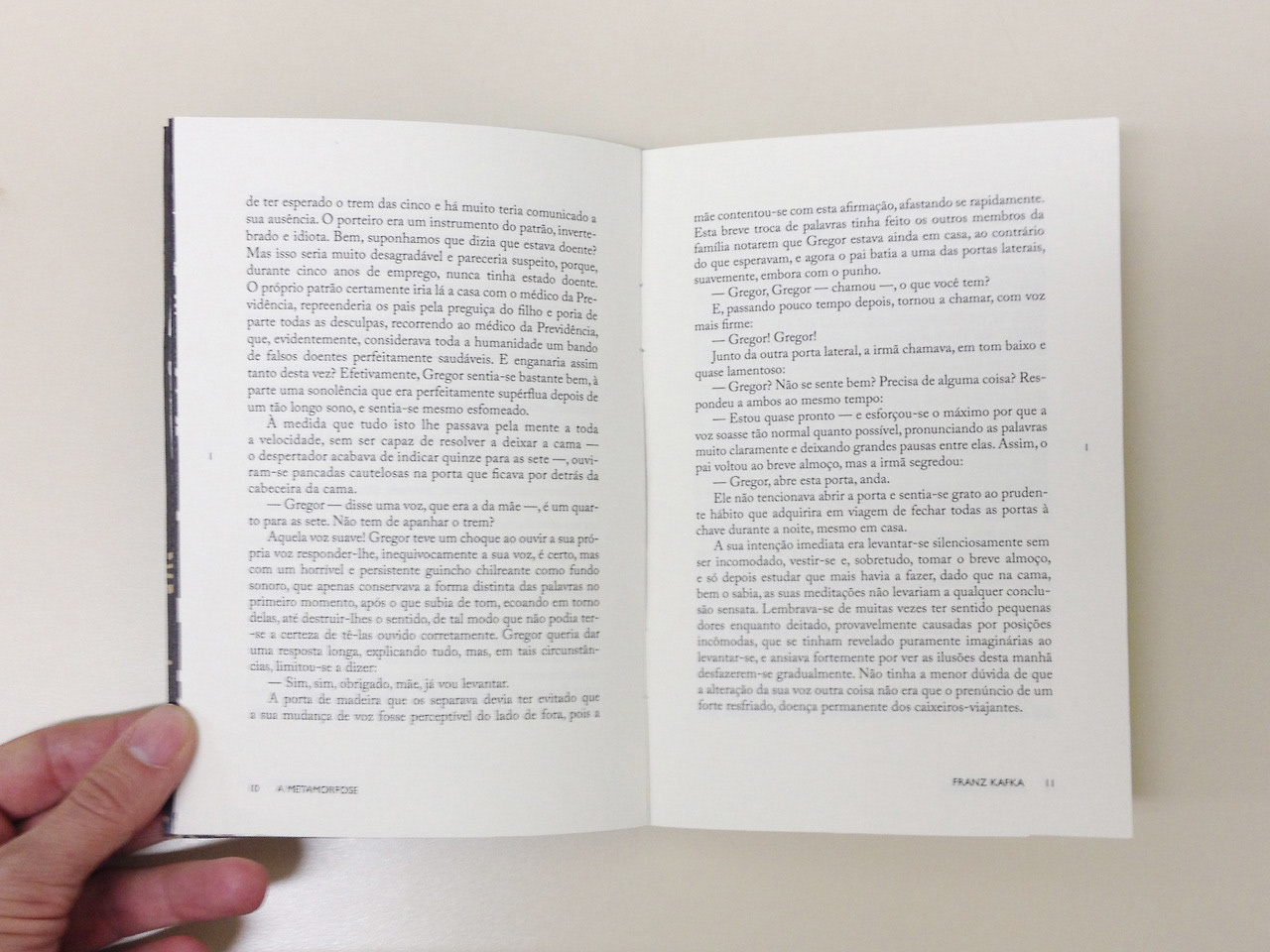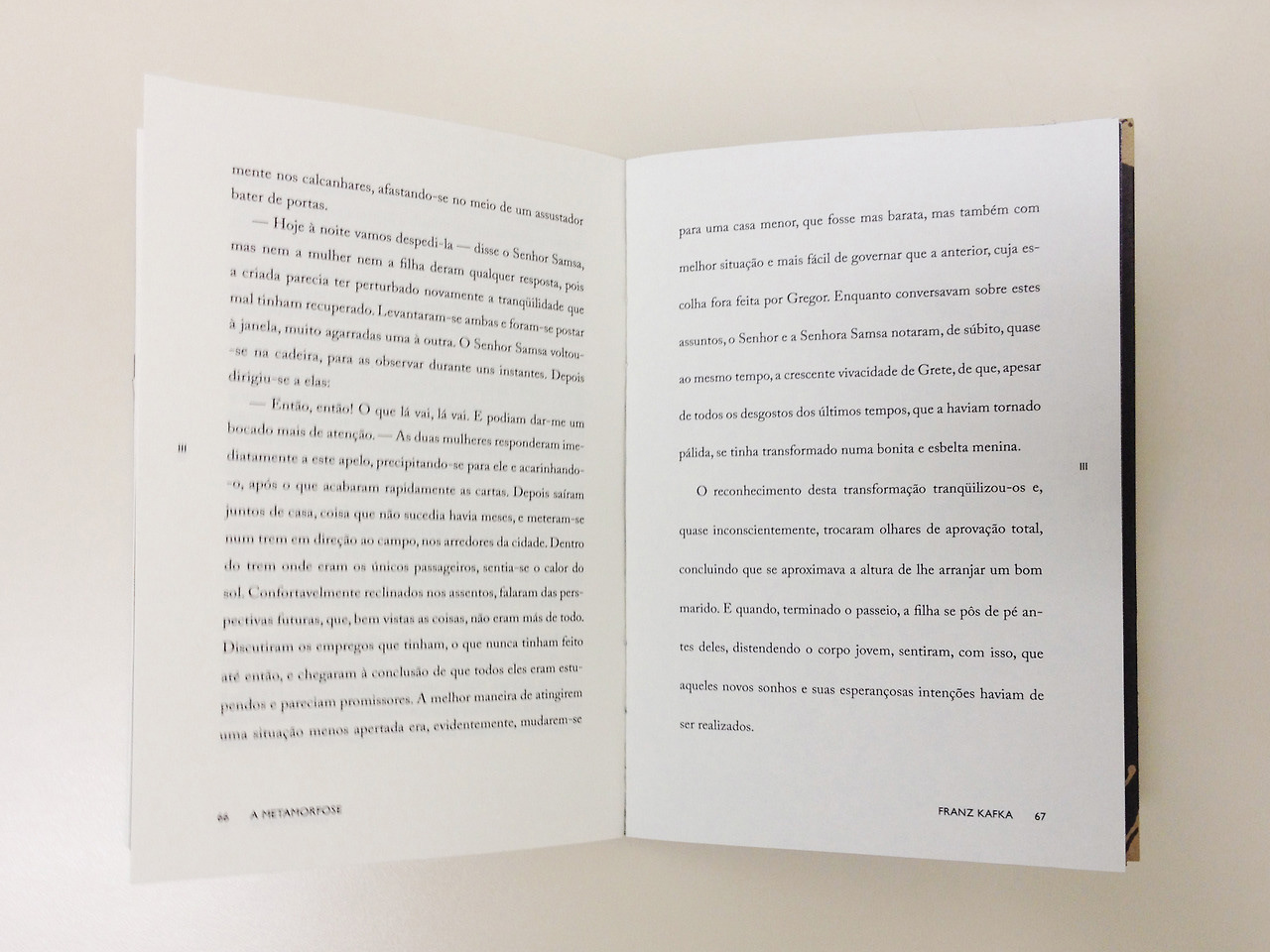 "The Metamorphosis" by Franz Kafka, book design for Editorial Design discipline, graduate studies in typography - Senac SP.