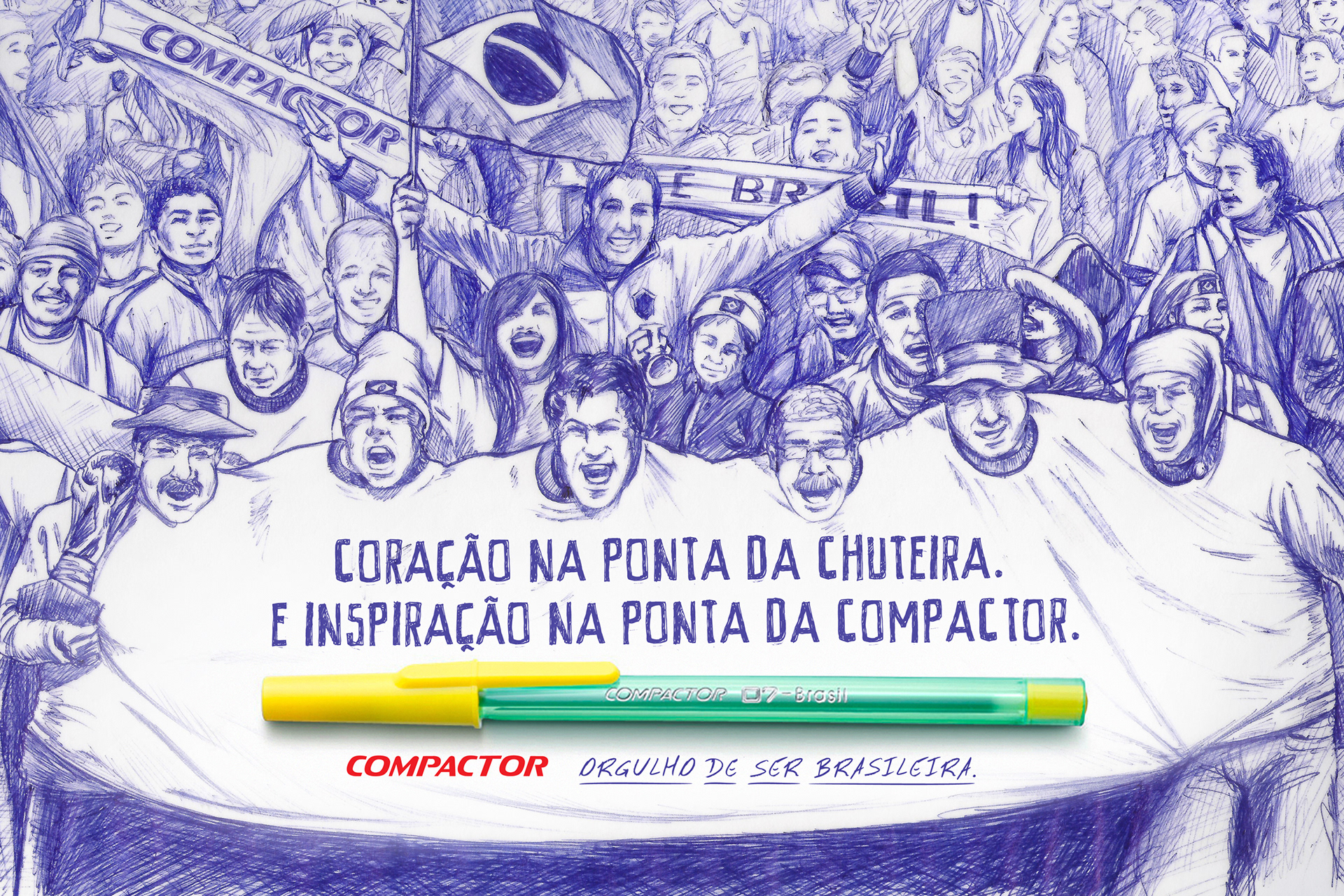 Illustration and art direction for "Compactor 07 Brasil", a Brazilian themed ballpoint pen ad during 2014 World Cup.
