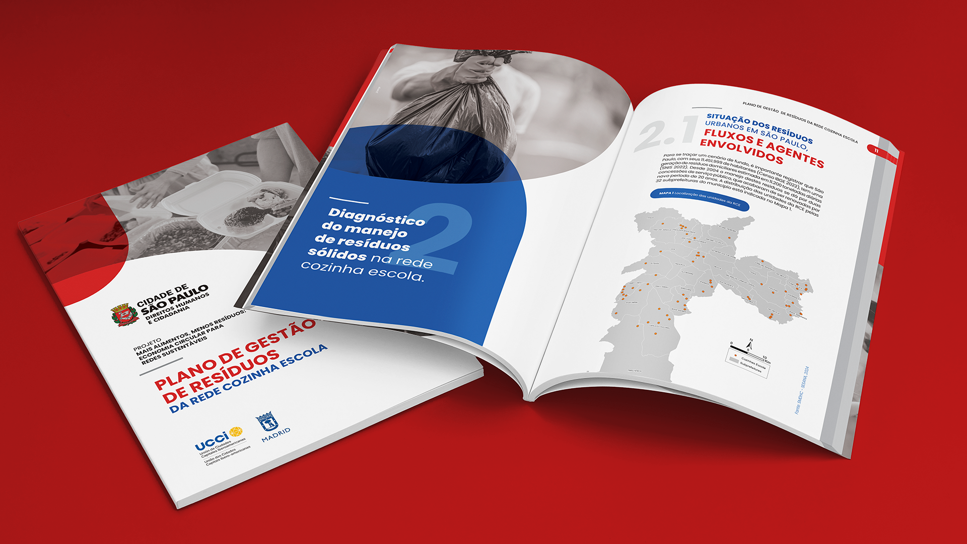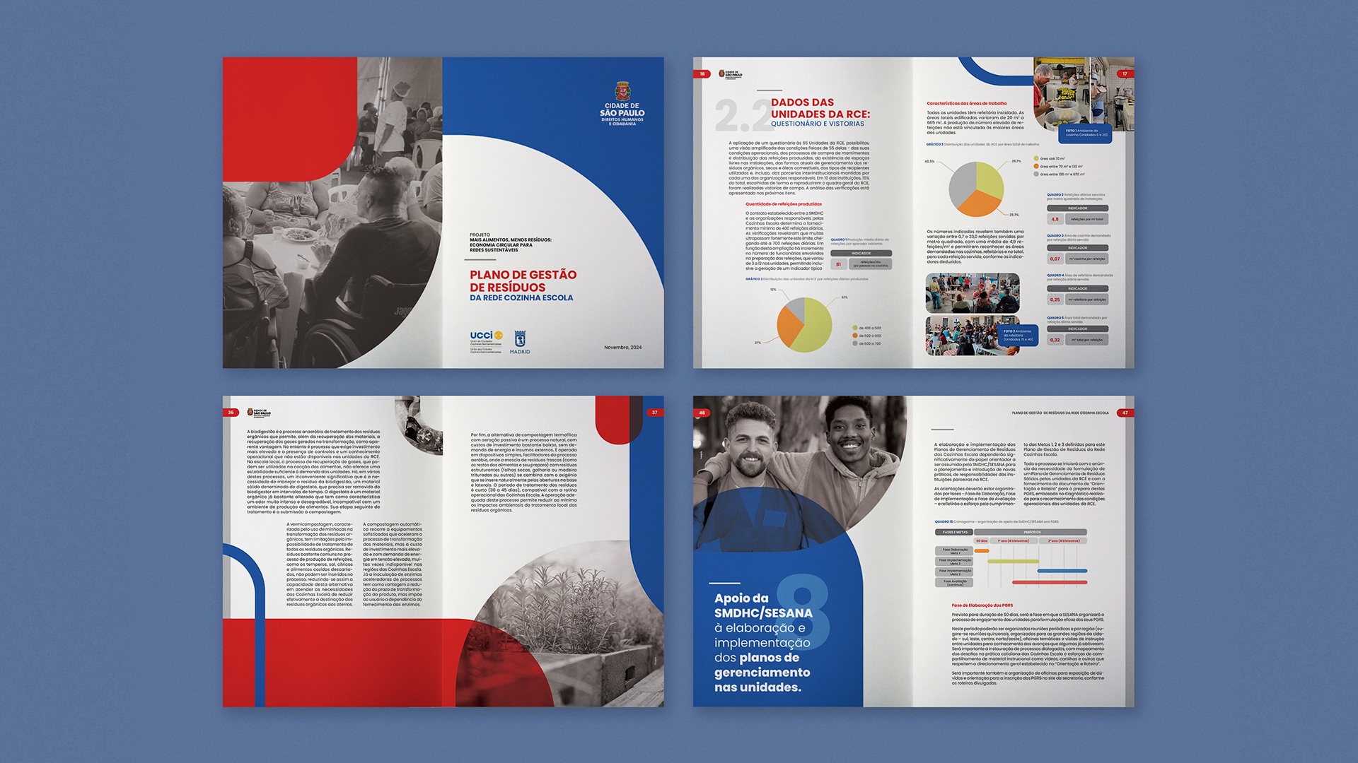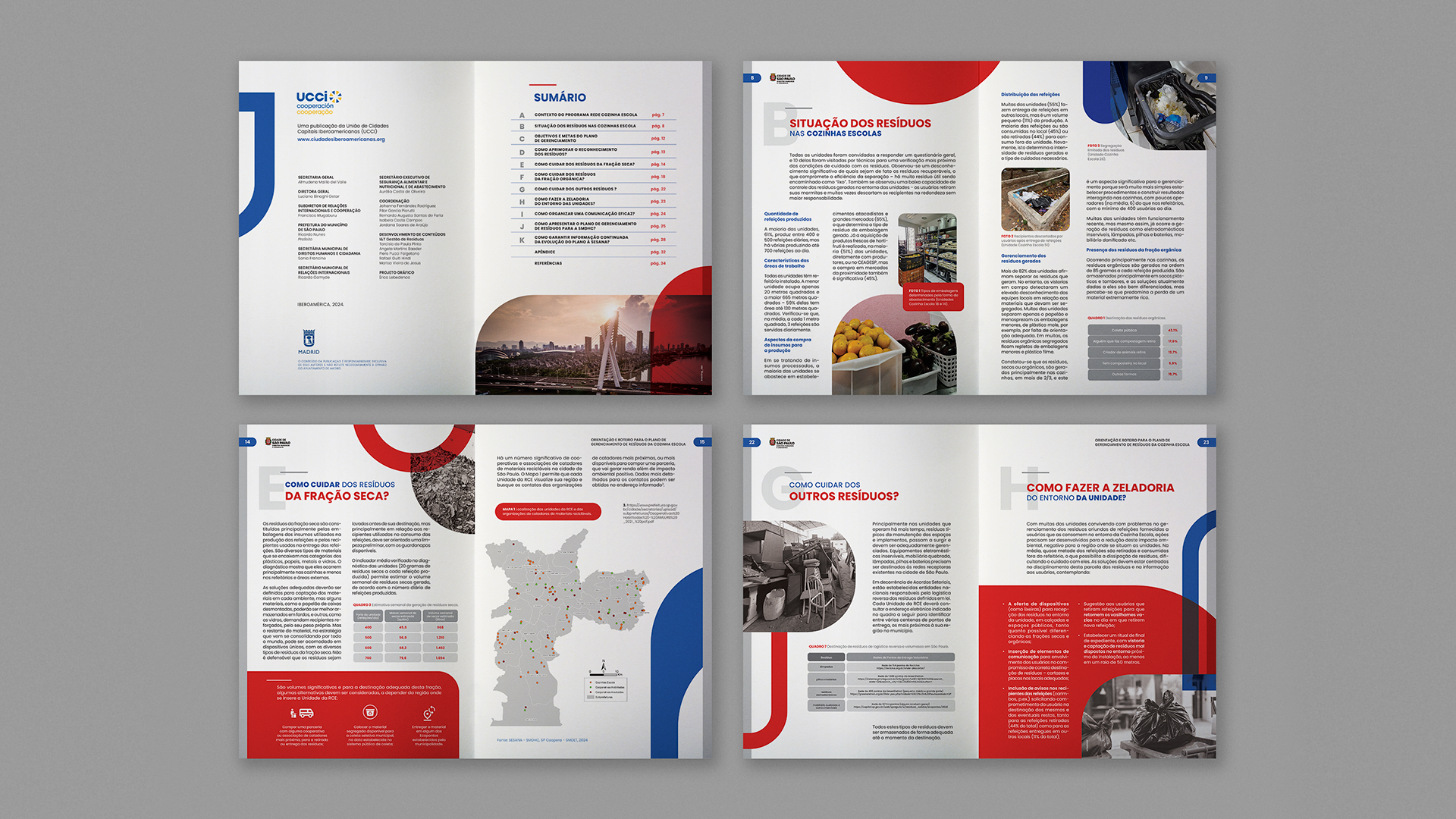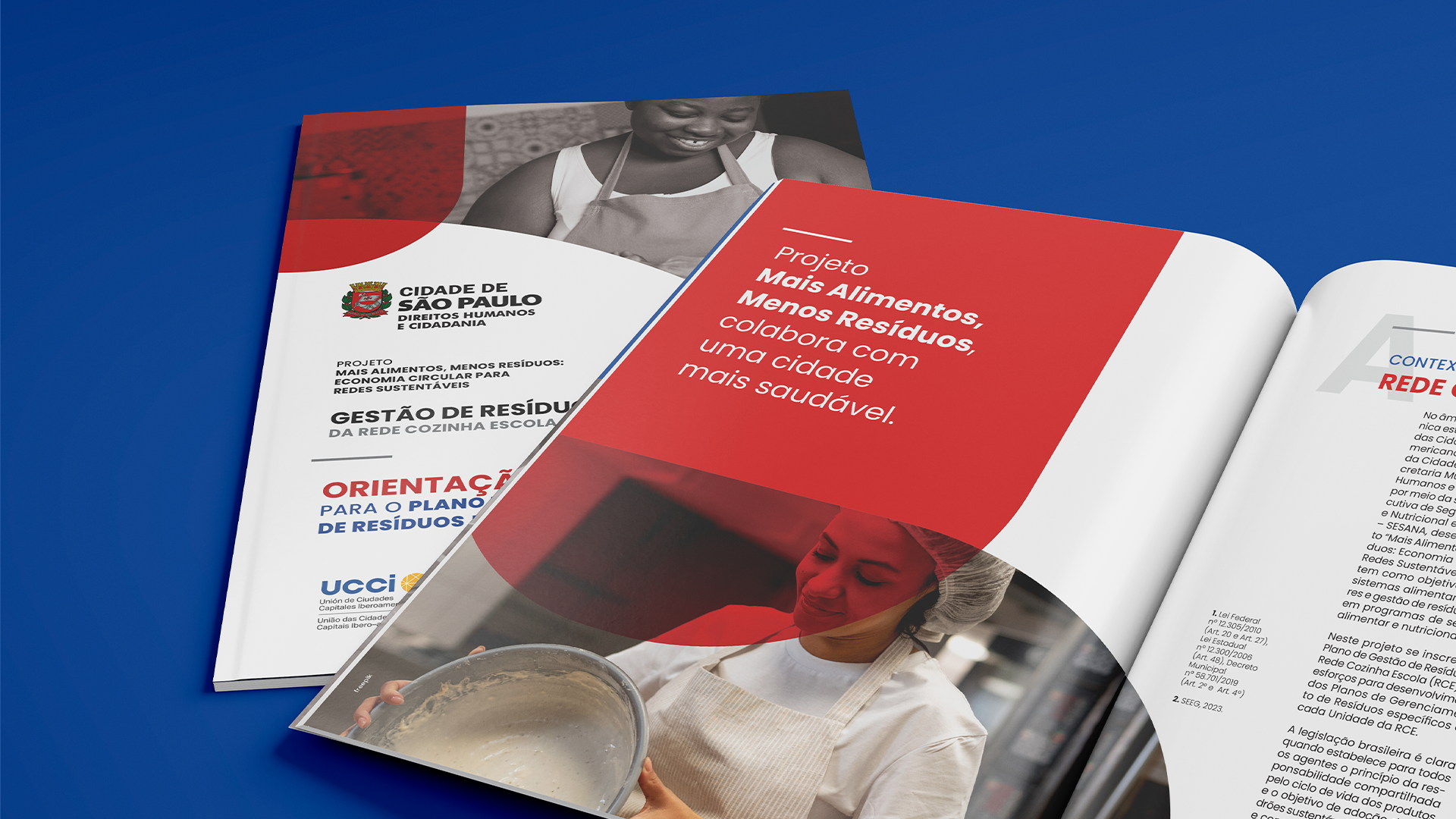 Rede Cozinha Escola | Waste Management Program Graphic design and layout for the Rede Cozinha Escola Waste Management reports, transforming technical guidelines into practical reference materials to optimize kitchen management and minimize waste. The design prioritizes information accessibility, empowering those involved to reduce waste and actively contribute to a healthier São Paulo. CONTENT DEVELOPMENT: I&T Gestão de Resíduos (Tarcísio de Paula Pinto, Angela Martins Baeder, Piero Pucci Falgetano, Rafael Guiti Hindi, Marisa Vieira de Jesus) GRAPHIC DESIGN: Érico Lebedenco DESIGN ASSISTANT: Arthur Silva