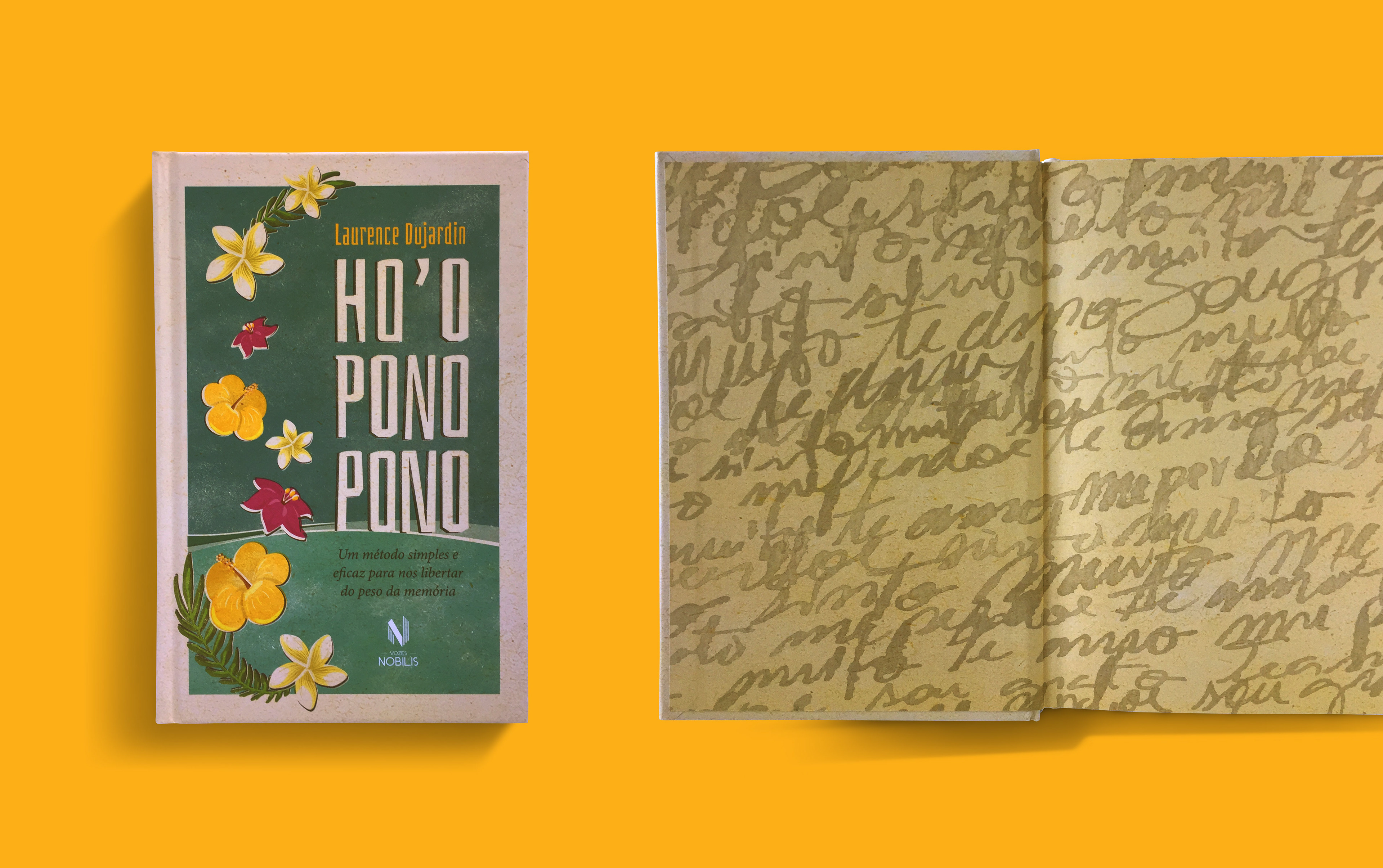 Vozes Nobilis Publishing House | Ho'oponopono book cover design and calligraphic pattern for endpapers