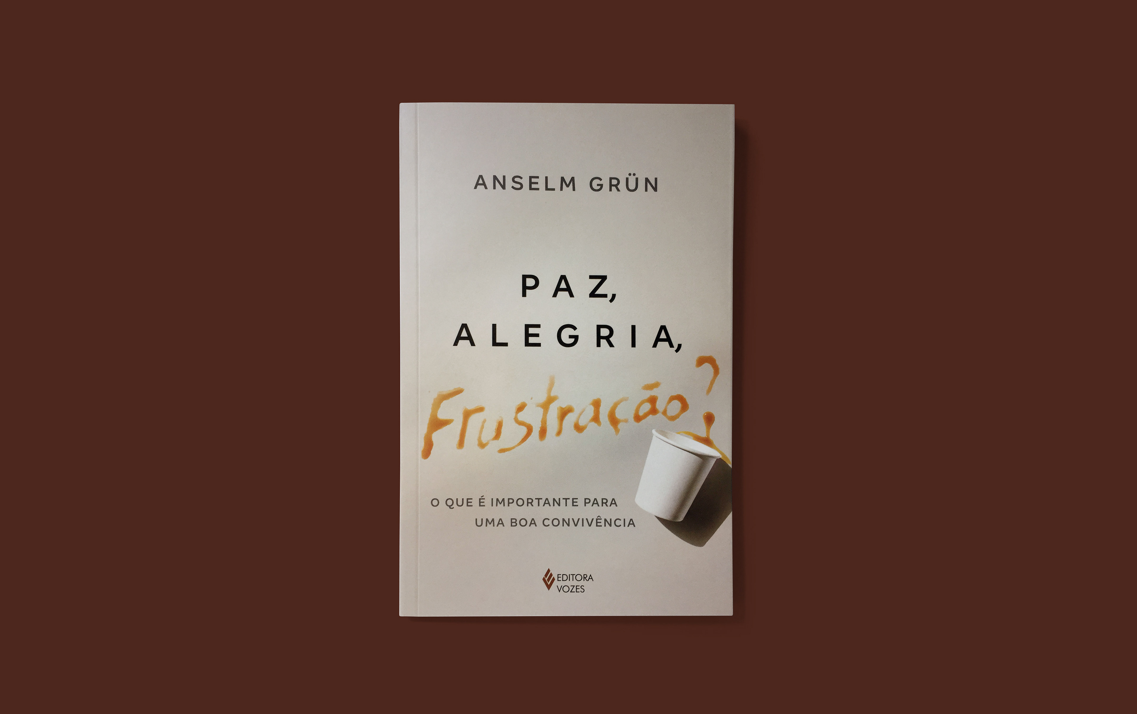 Lettering made of coffee and cover design for "Paz, alegria, frustração", by Anselm Grün. A book that addresses coexistence and how to deal with frustrations in every day life.