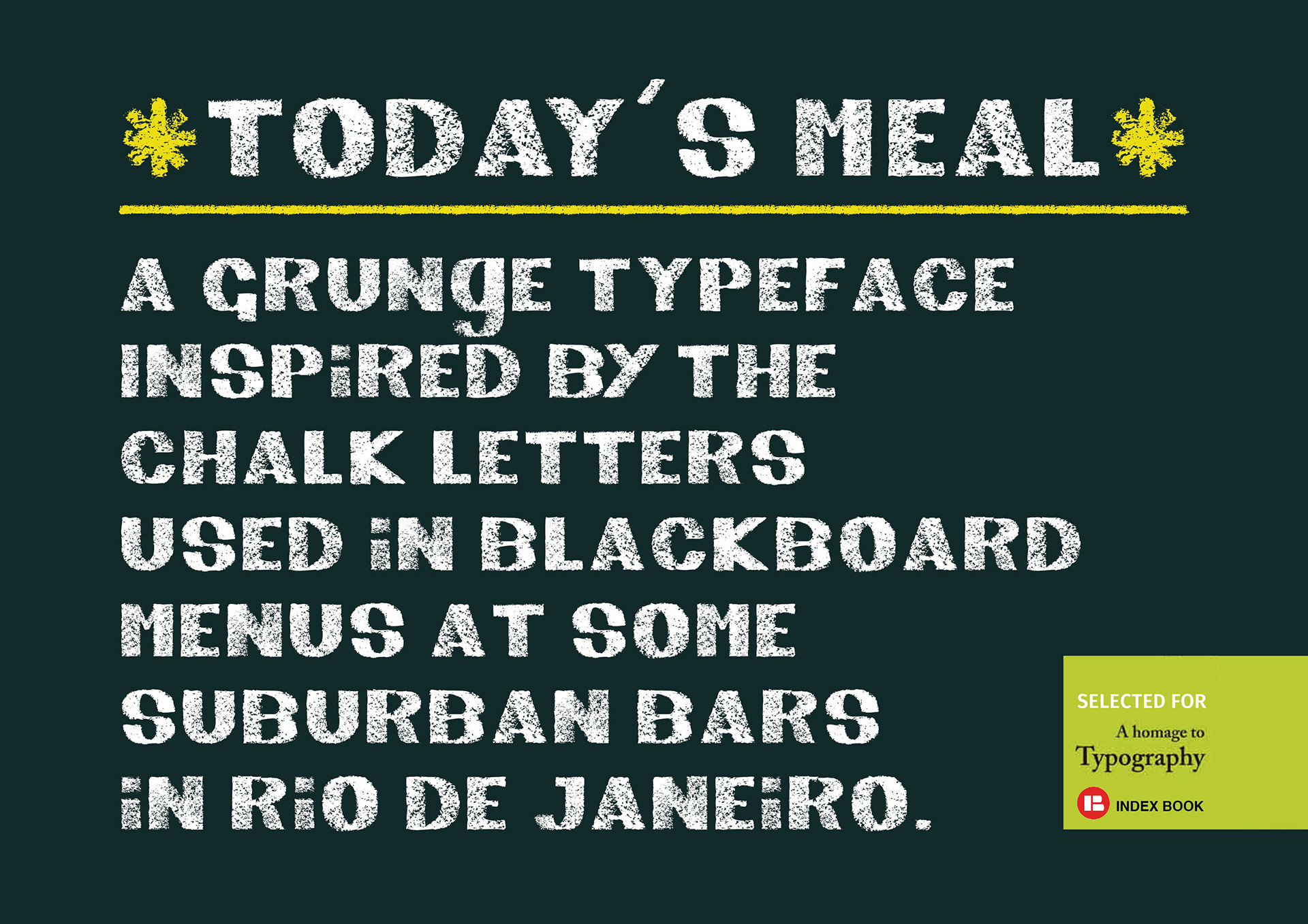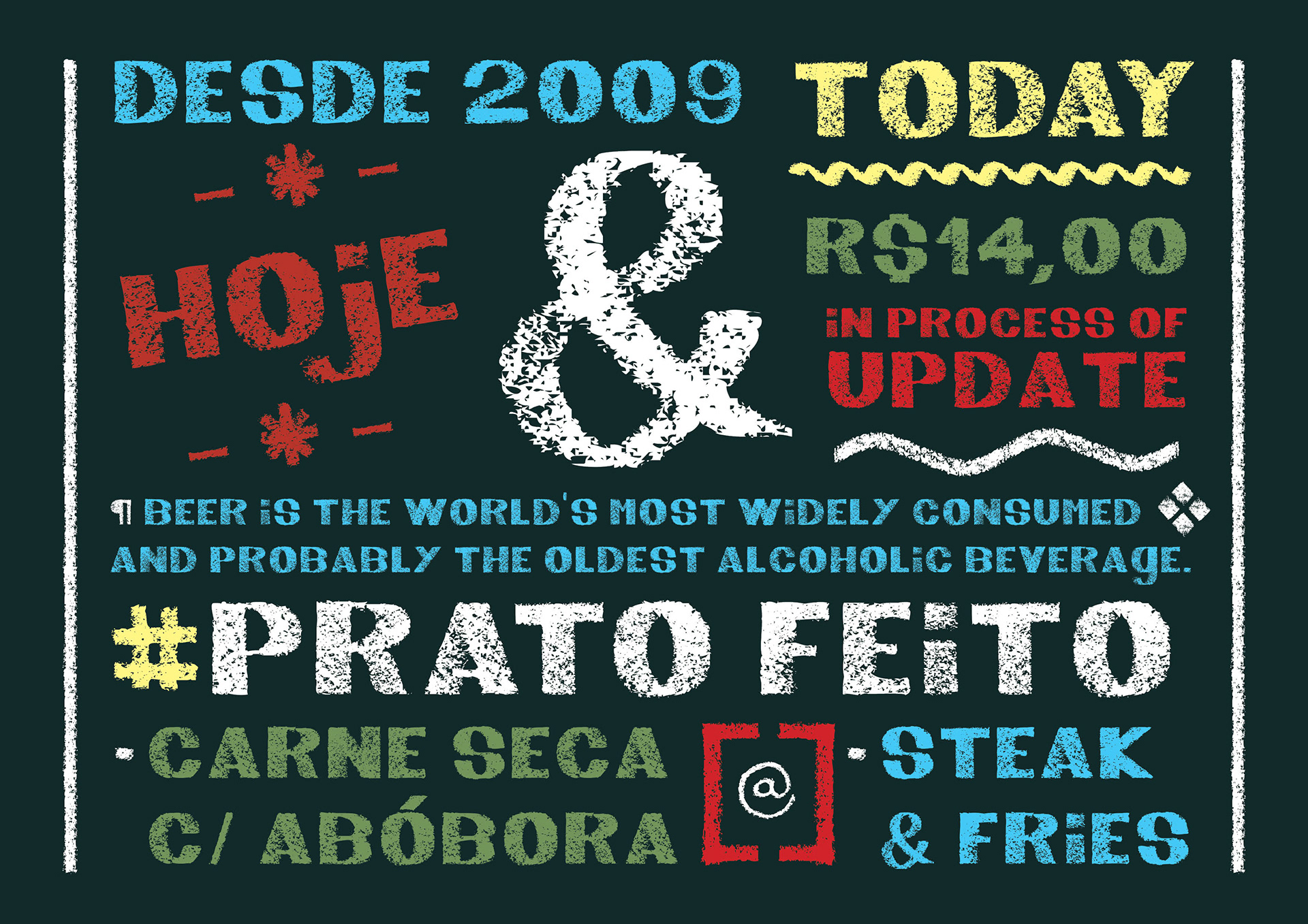 This typeface is inspired by the blackboard menus at local bars of Rio de Janeiro. Some bartenders write the meal of the day with school chalk.